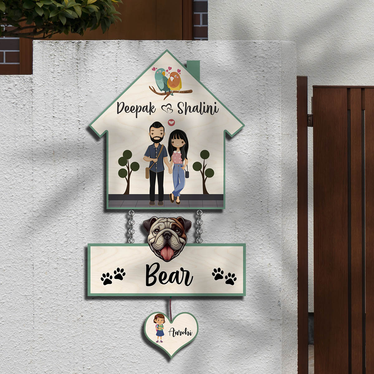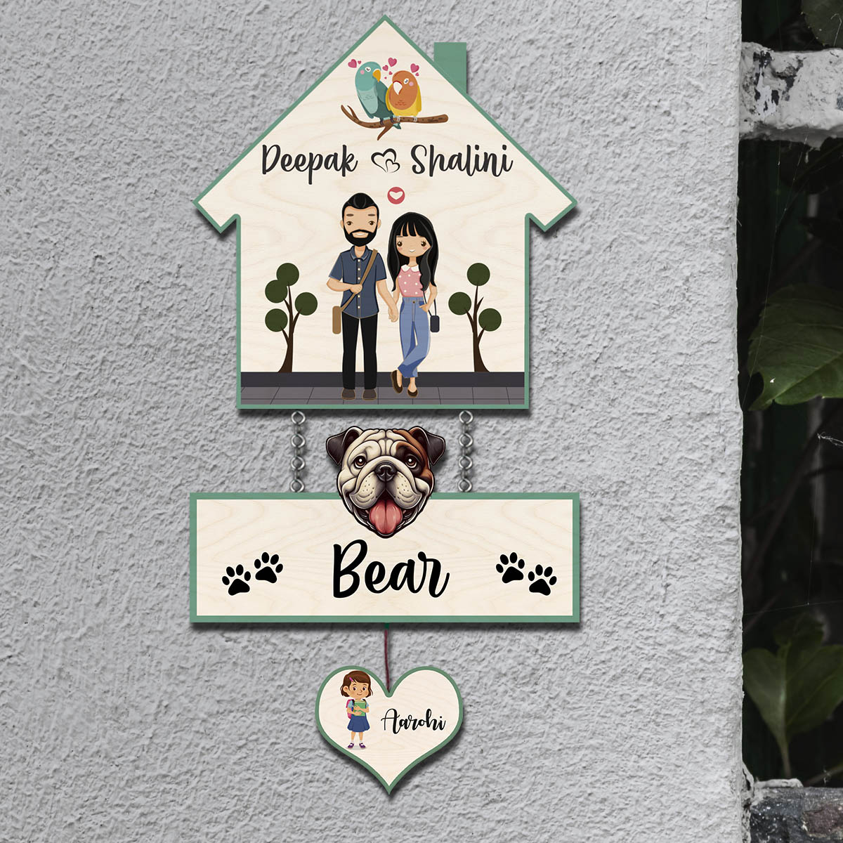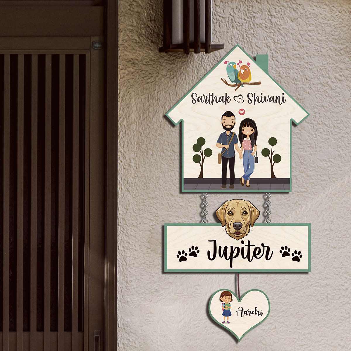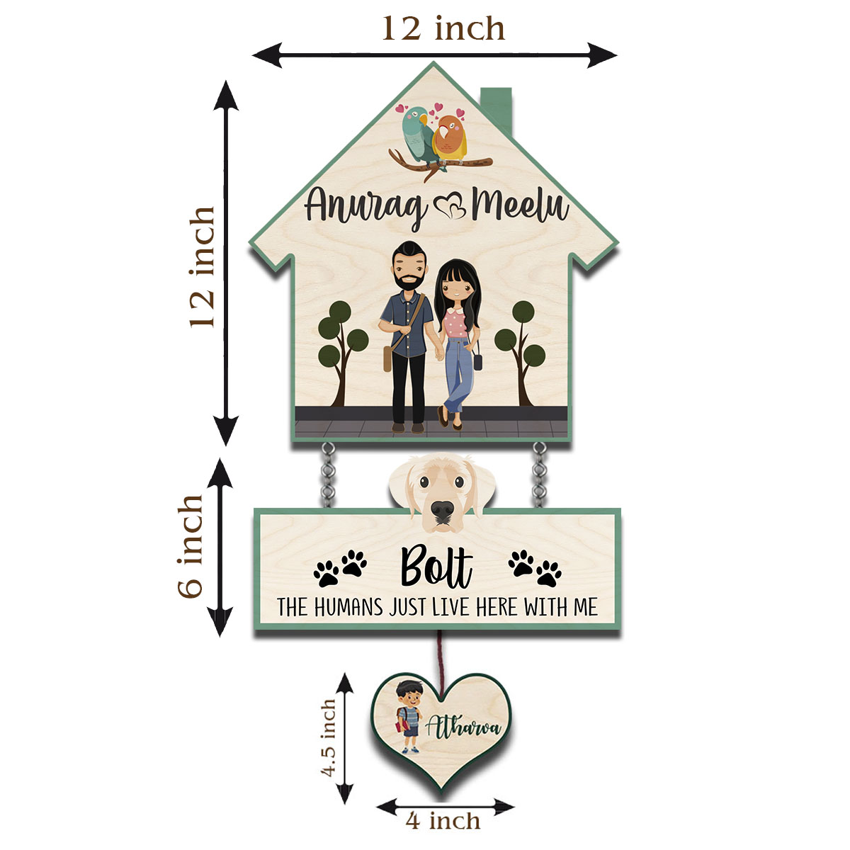 Beautiful Wooden Name Plate with Single Kid and Pet | Personalized