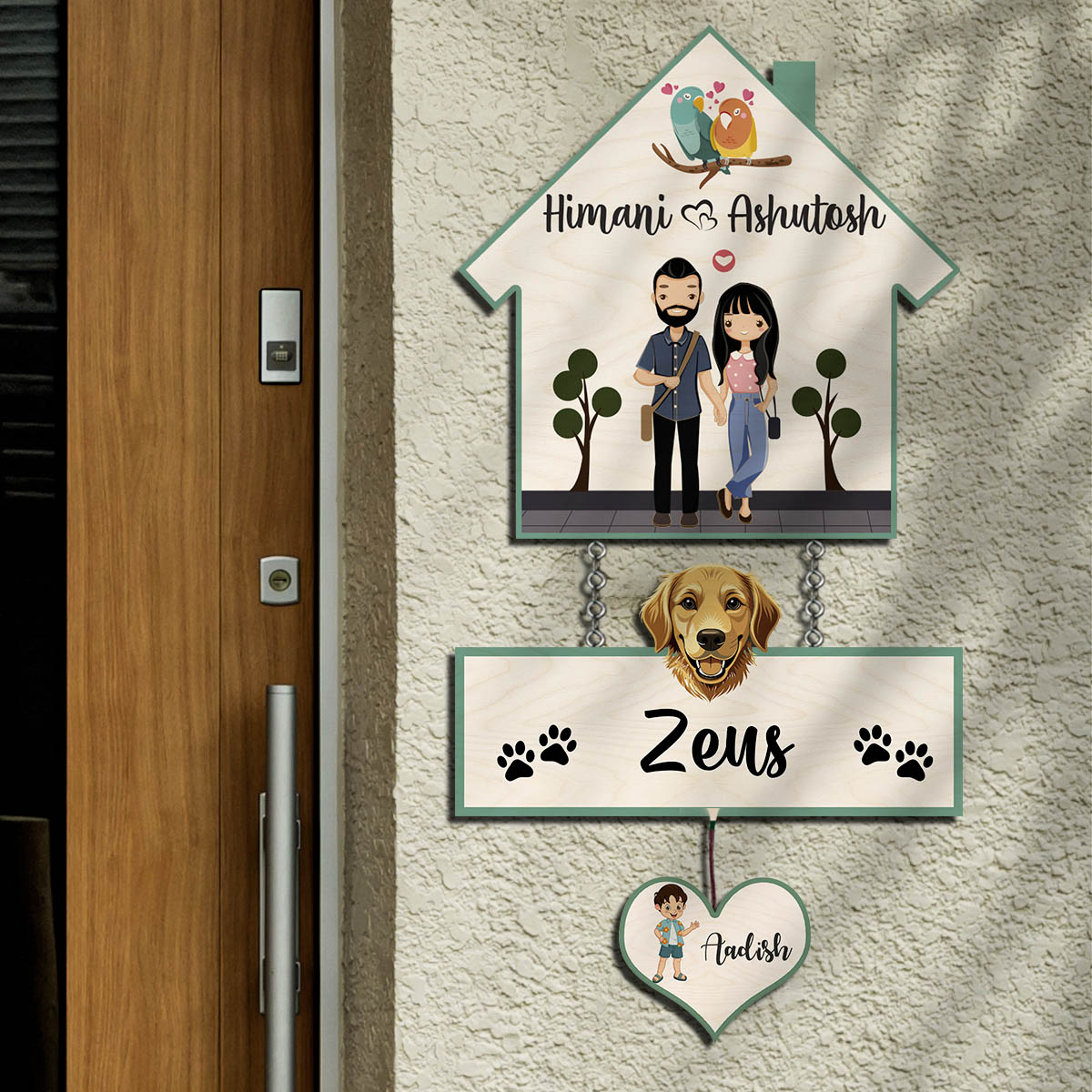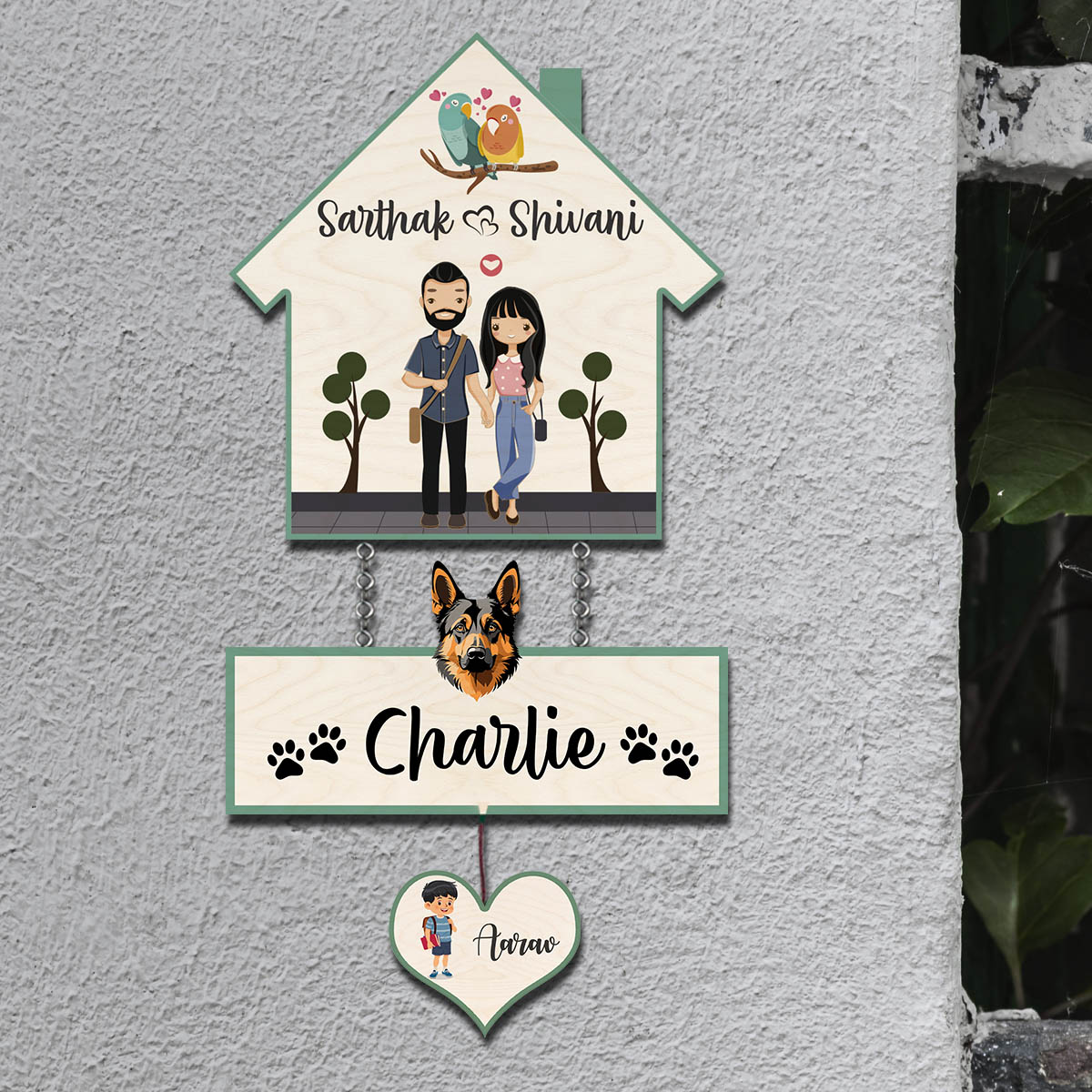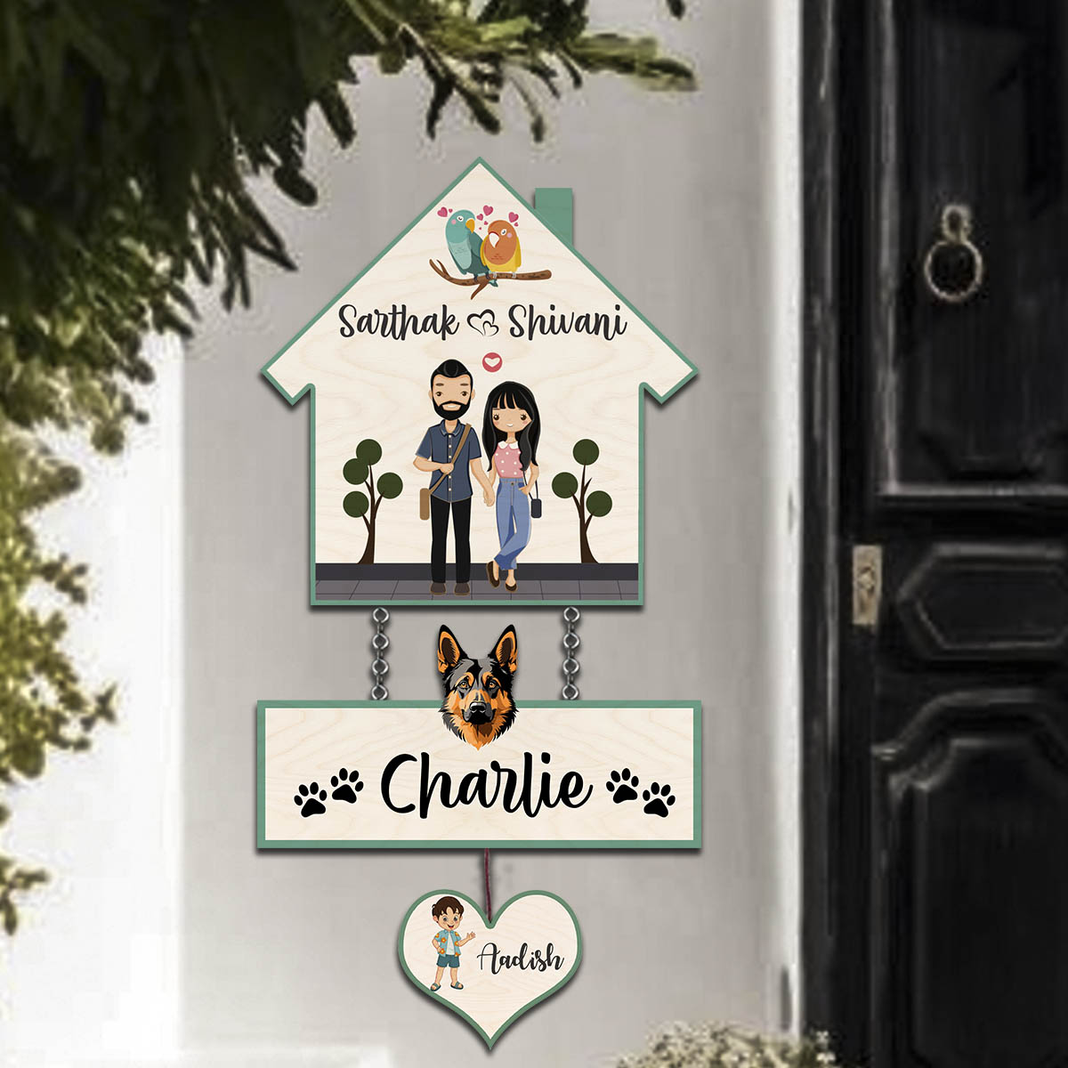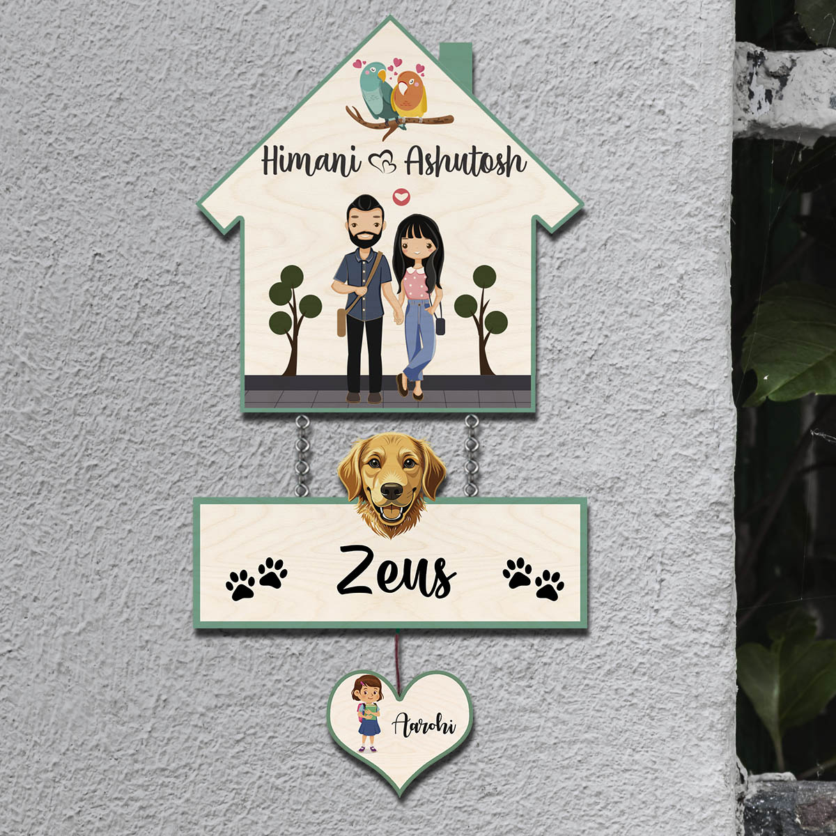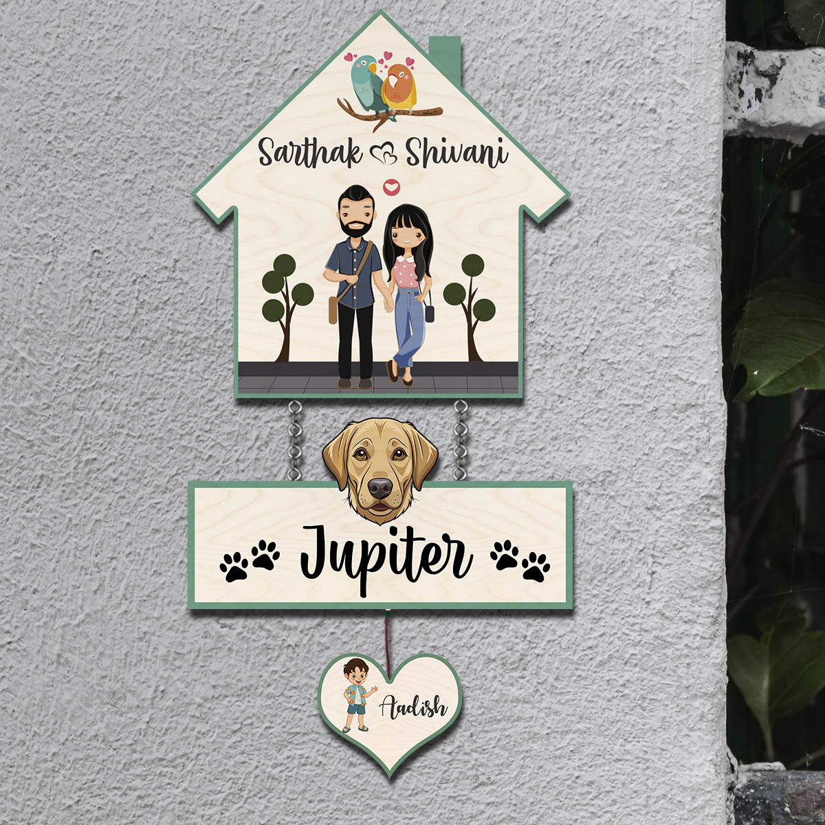 Beautiful Wooden Name Plate with Single Kid and Pet | Personalized