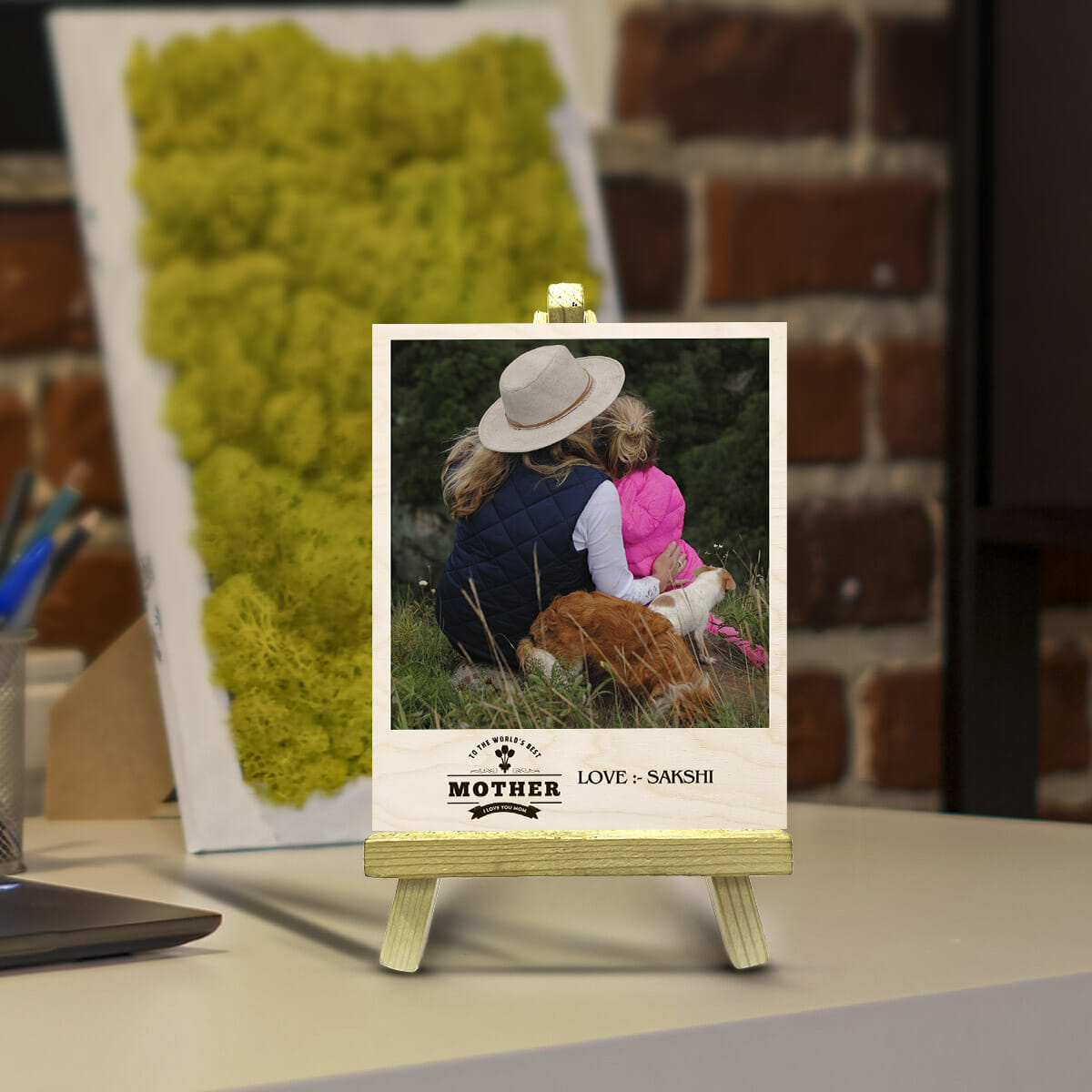 Best Mother in The World Wood Print With Easel Stand | 4X6 Inches