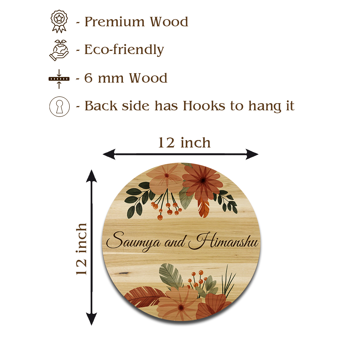 Bohemian Floral Theme Wooden Nameplate| Personalized | 12×12 inches
