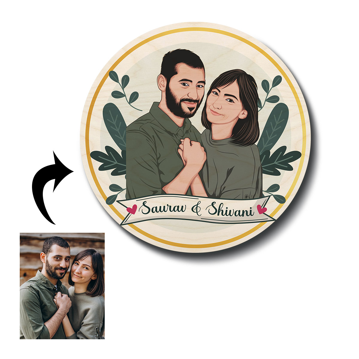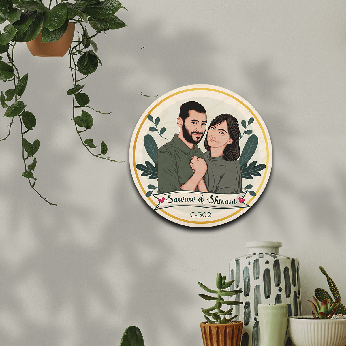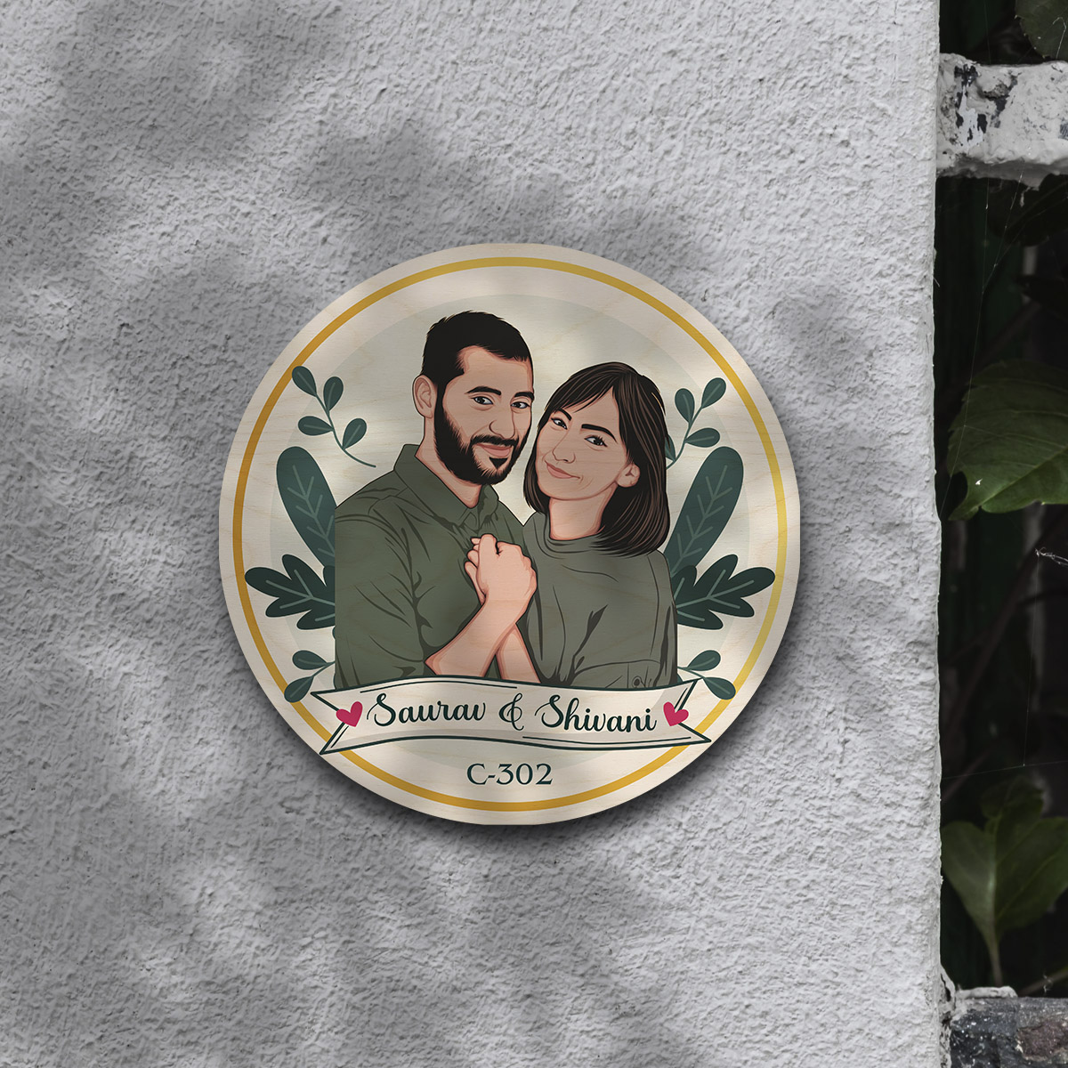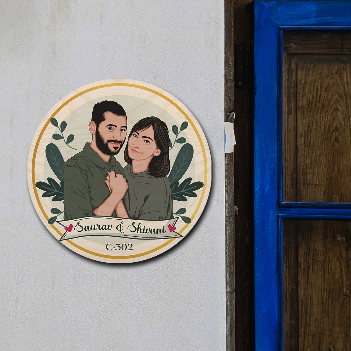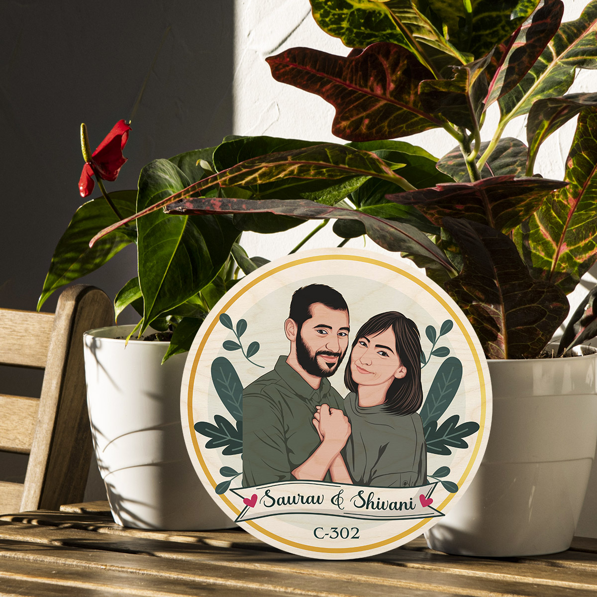 Caricature Wooden Name Plate | Personalized | 12*12 inches