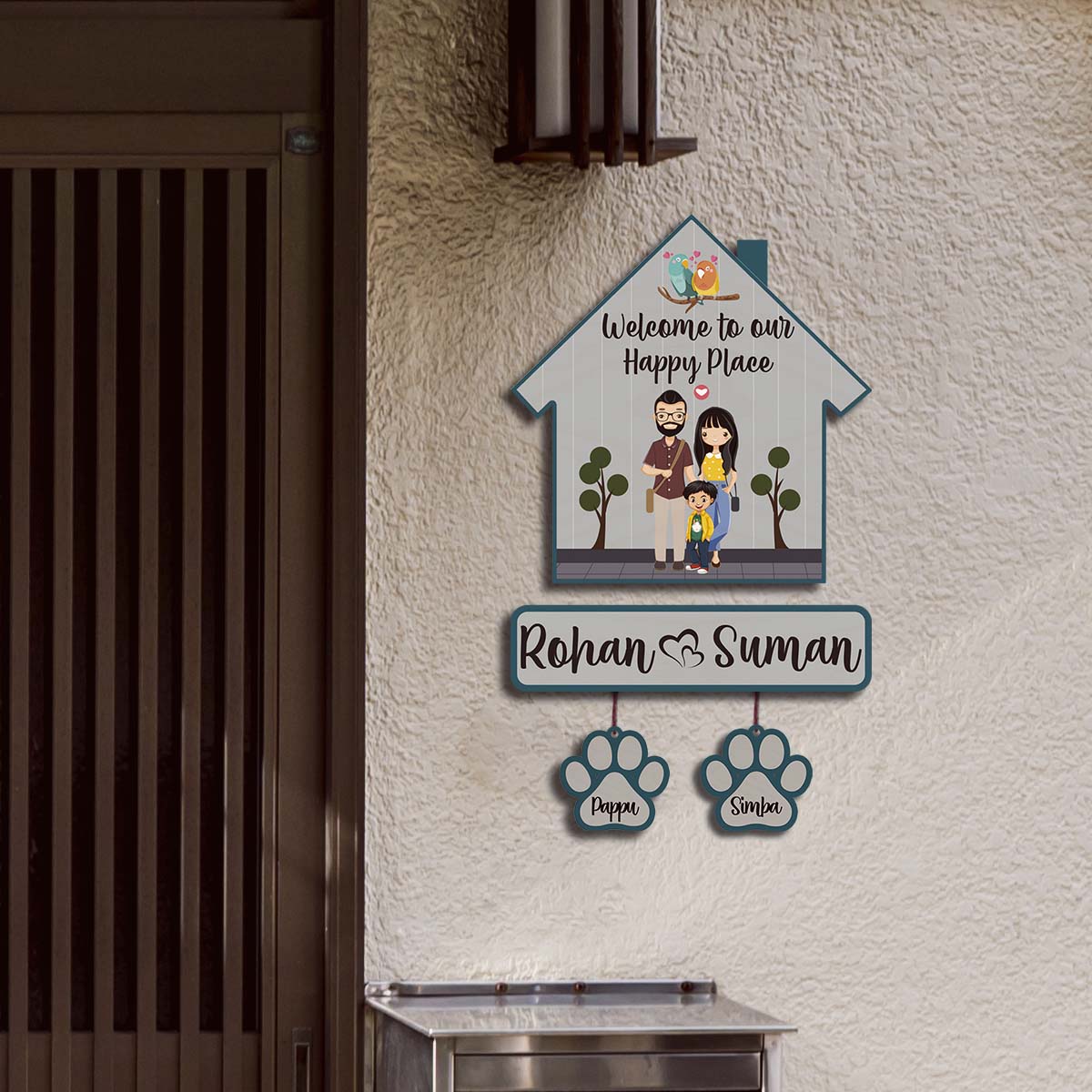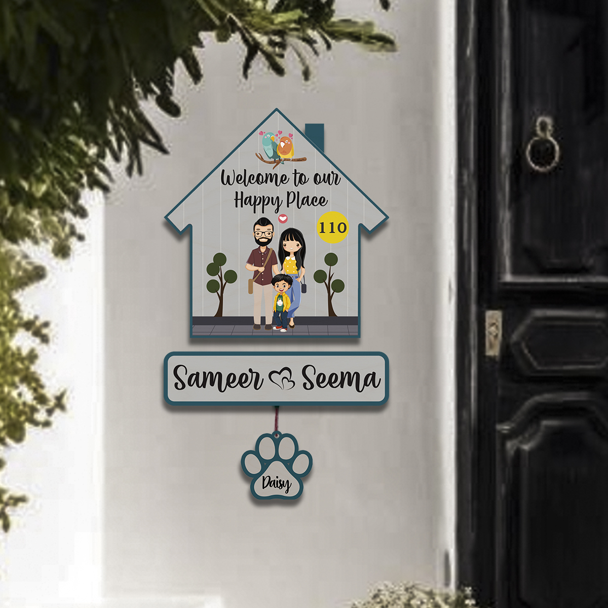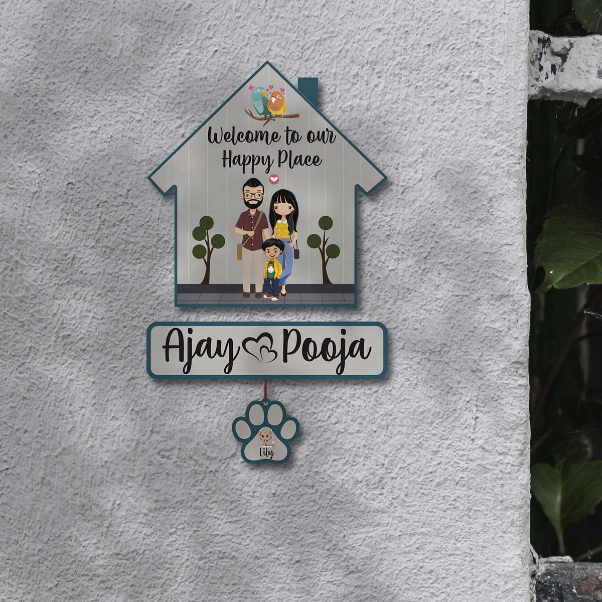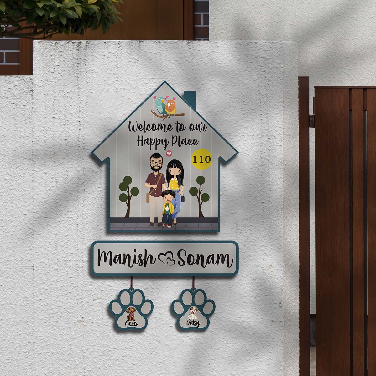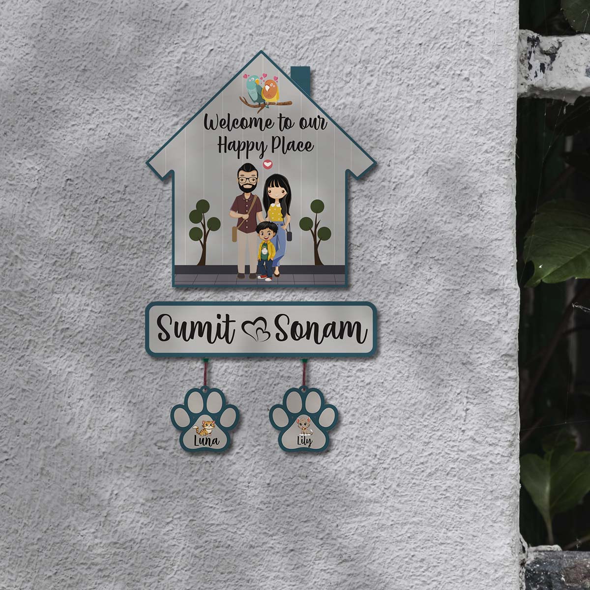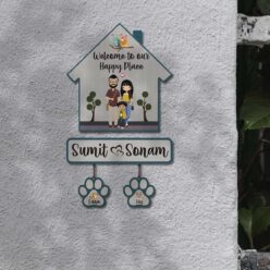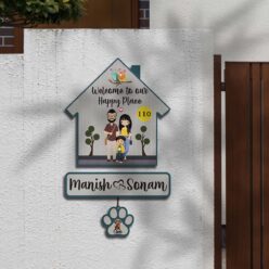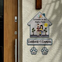 Couple with Pets Sign Name Plate | Personalized