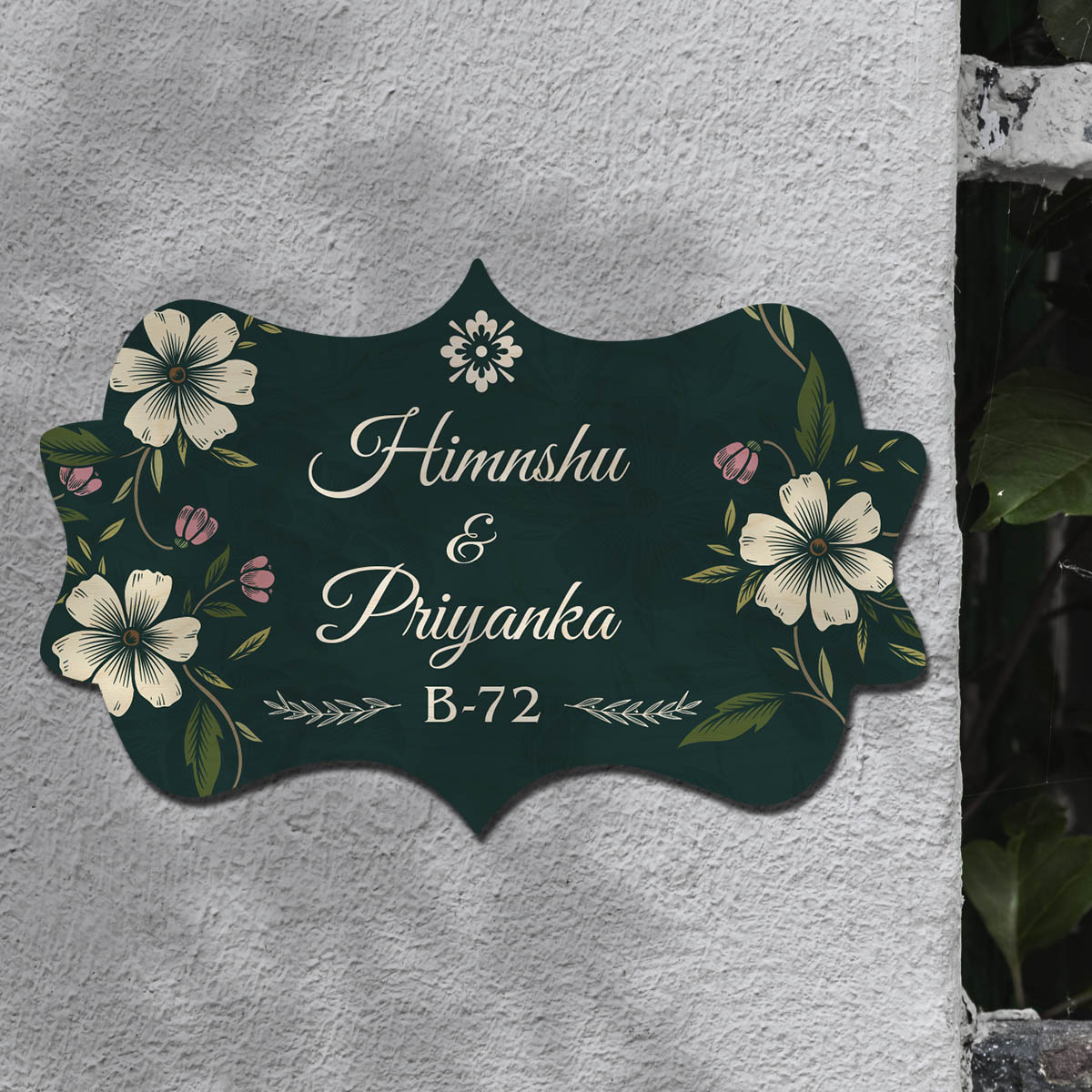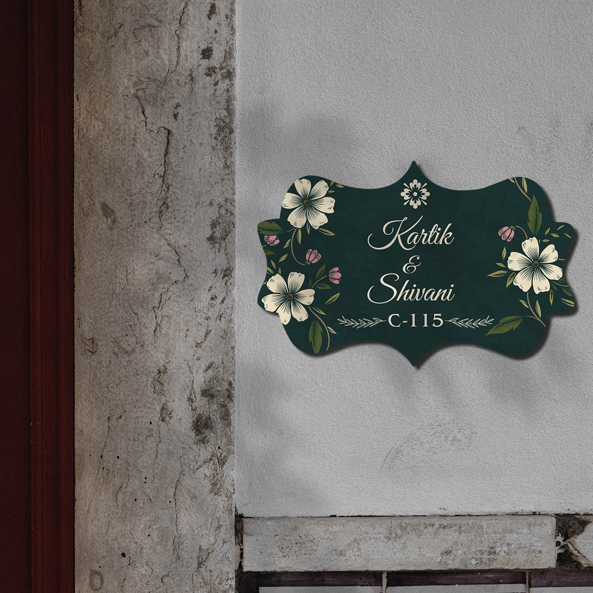 Floral Wooden Name plate For Doors | Personalized | 14*9 inches