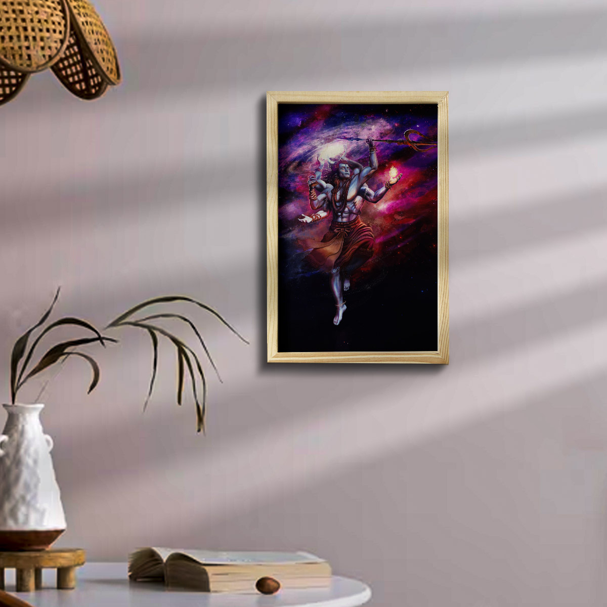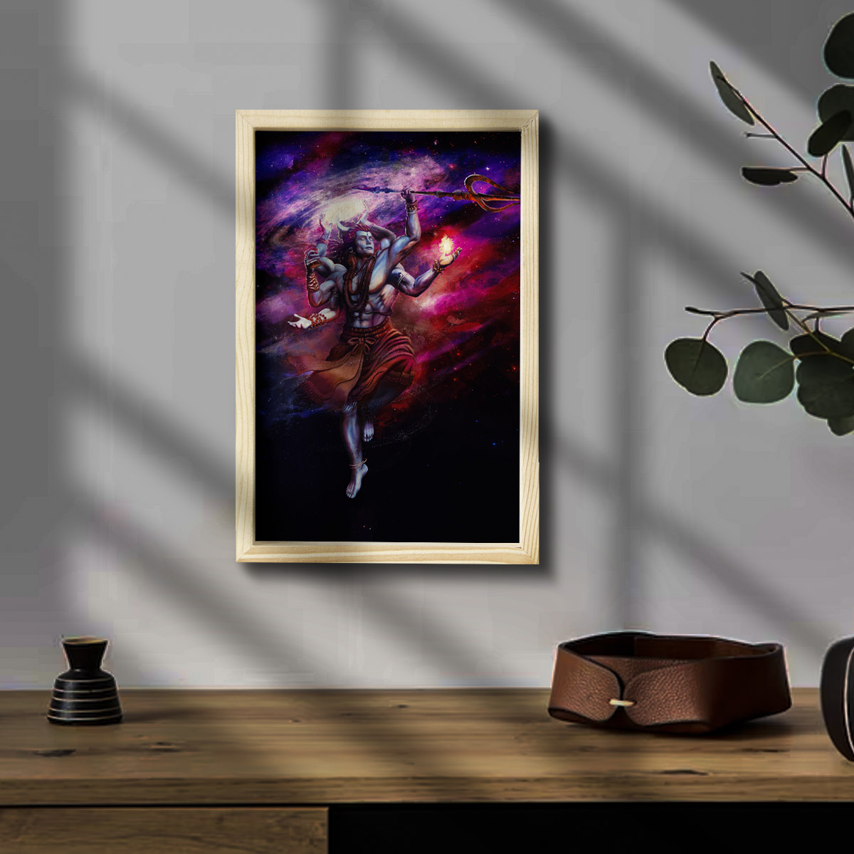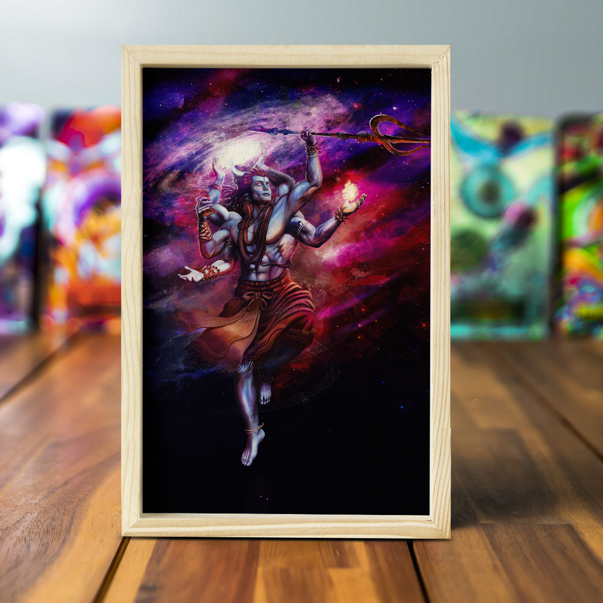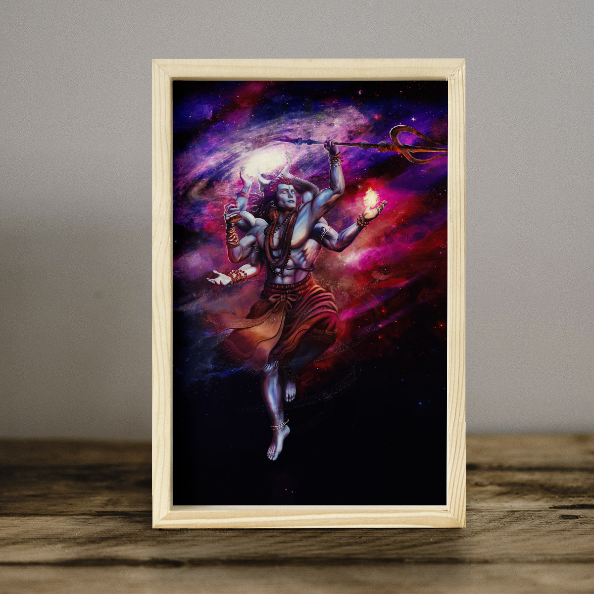 God Shiv Wooden Pine Frame