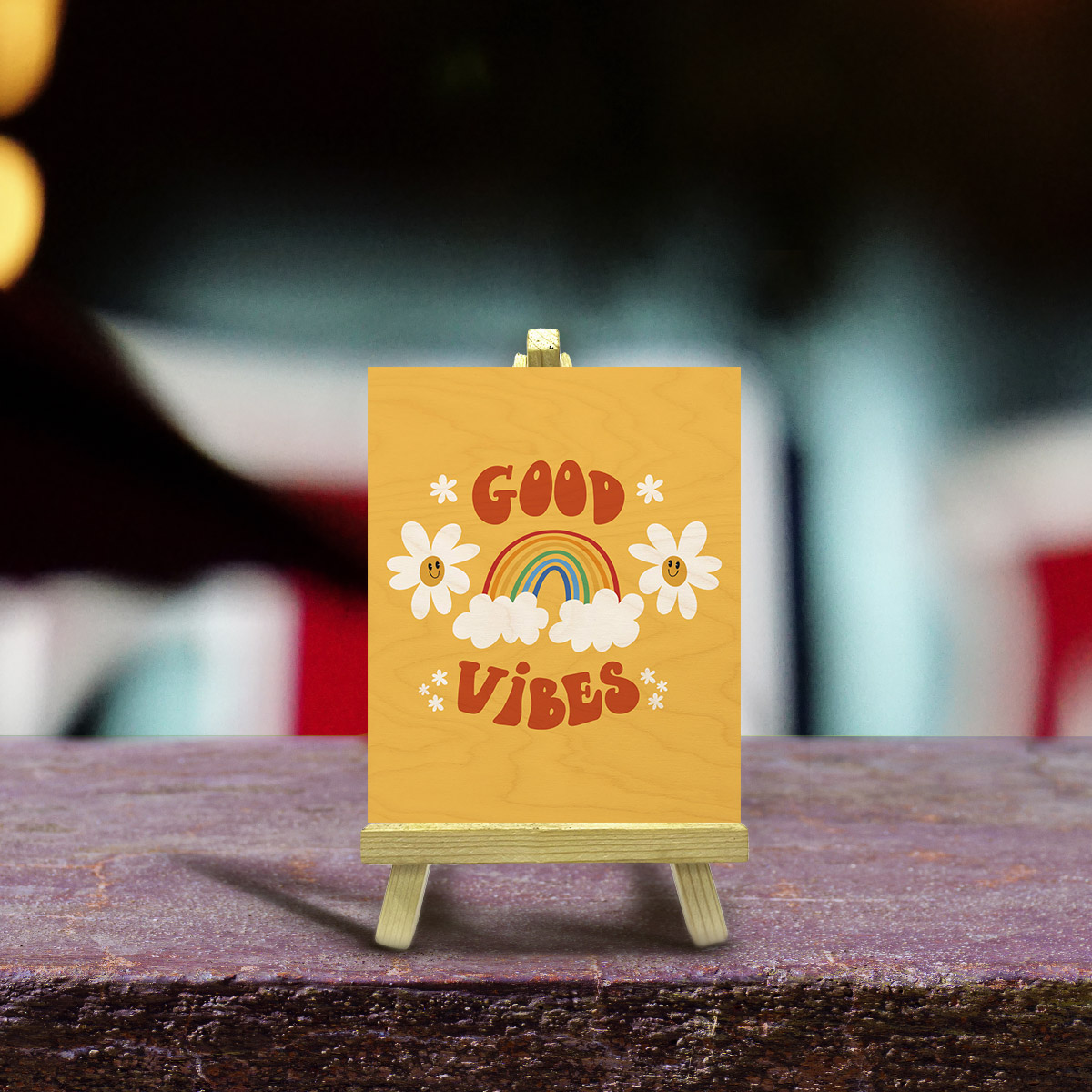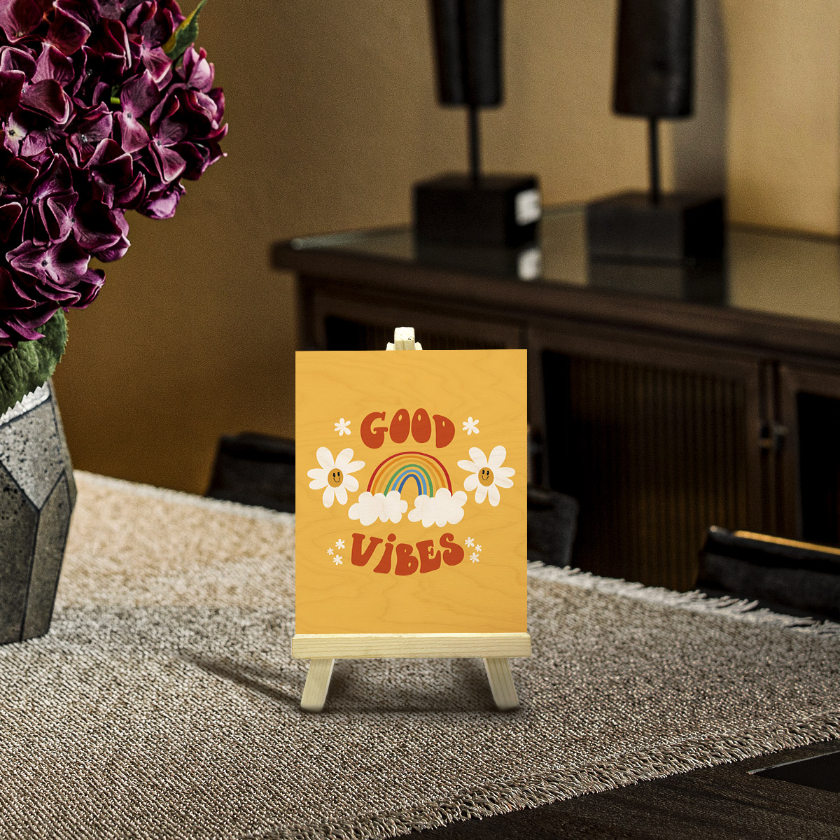 Good Vibes Wood Print With Easel Stand | Personalized | 4X6 Inches