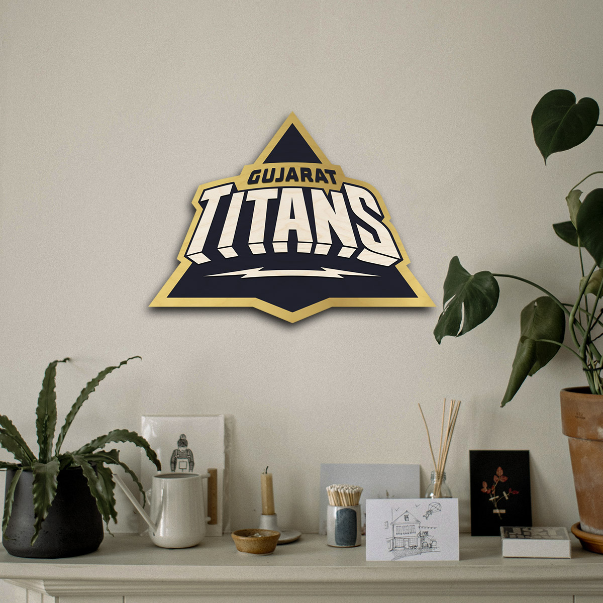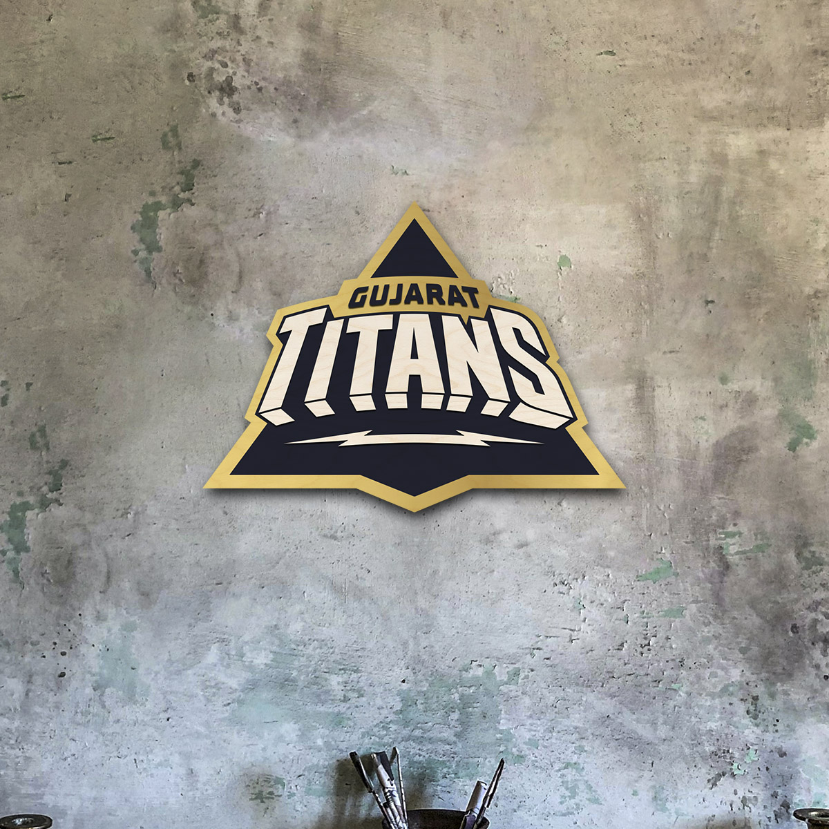 Handcrafted Wooden Gujarat Titans Crest