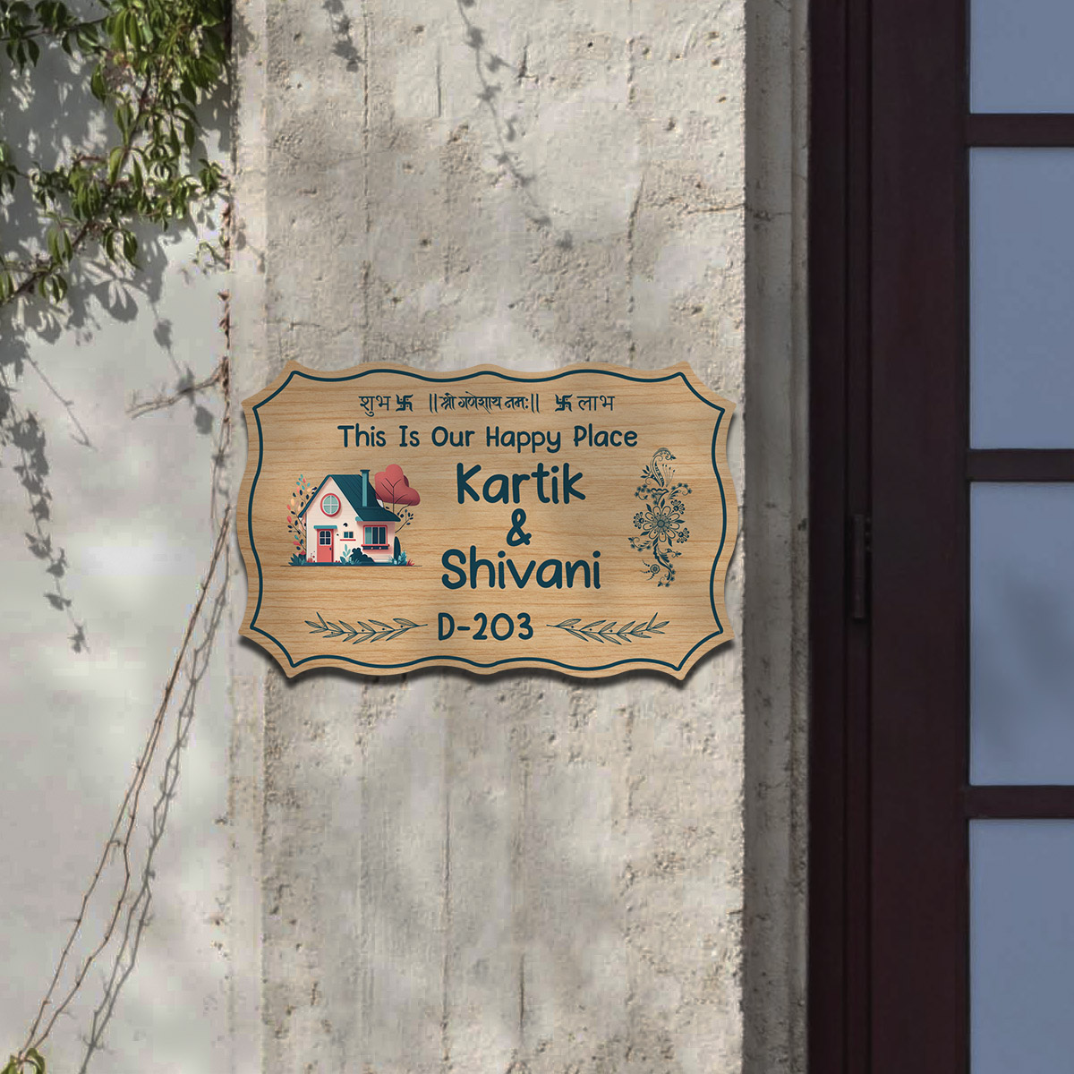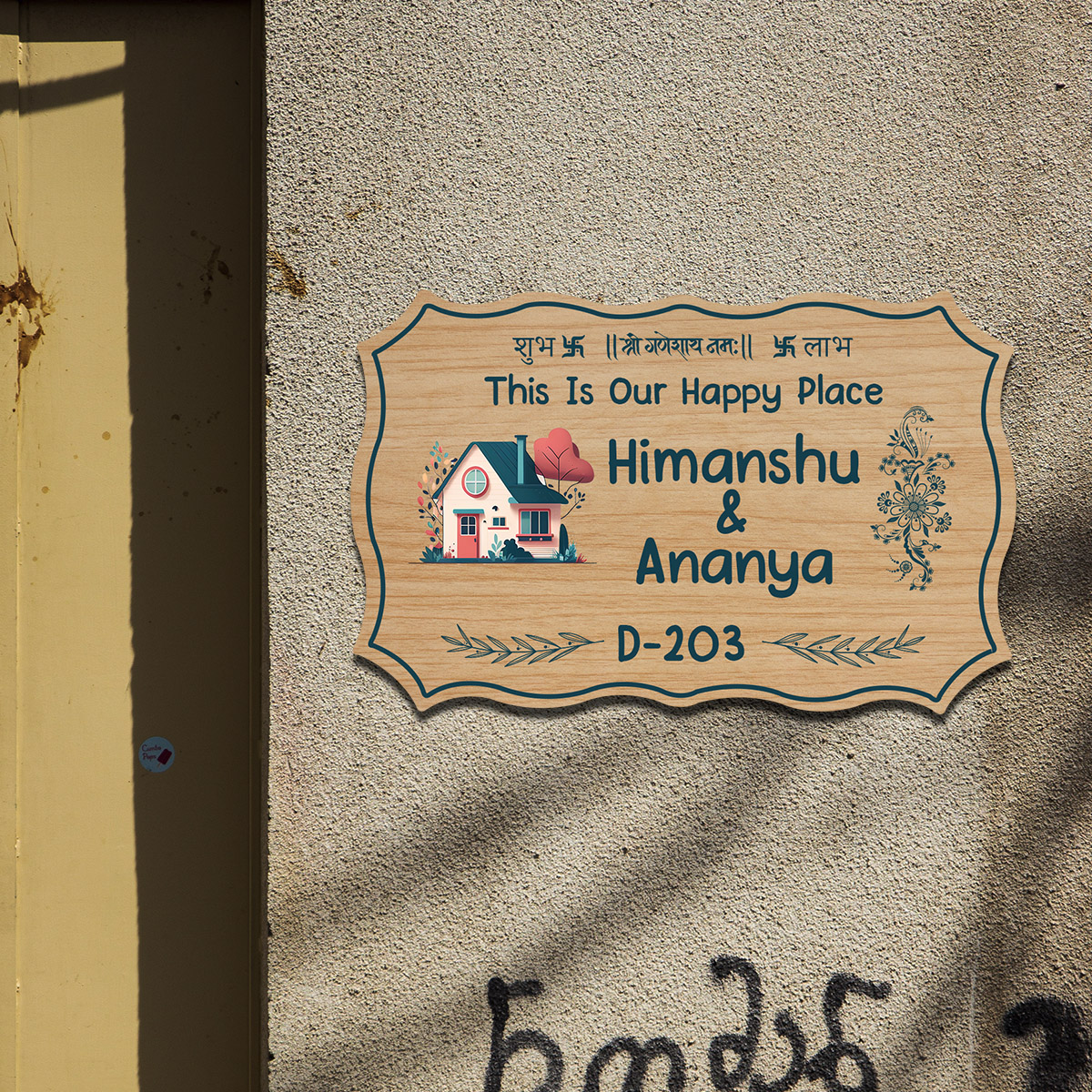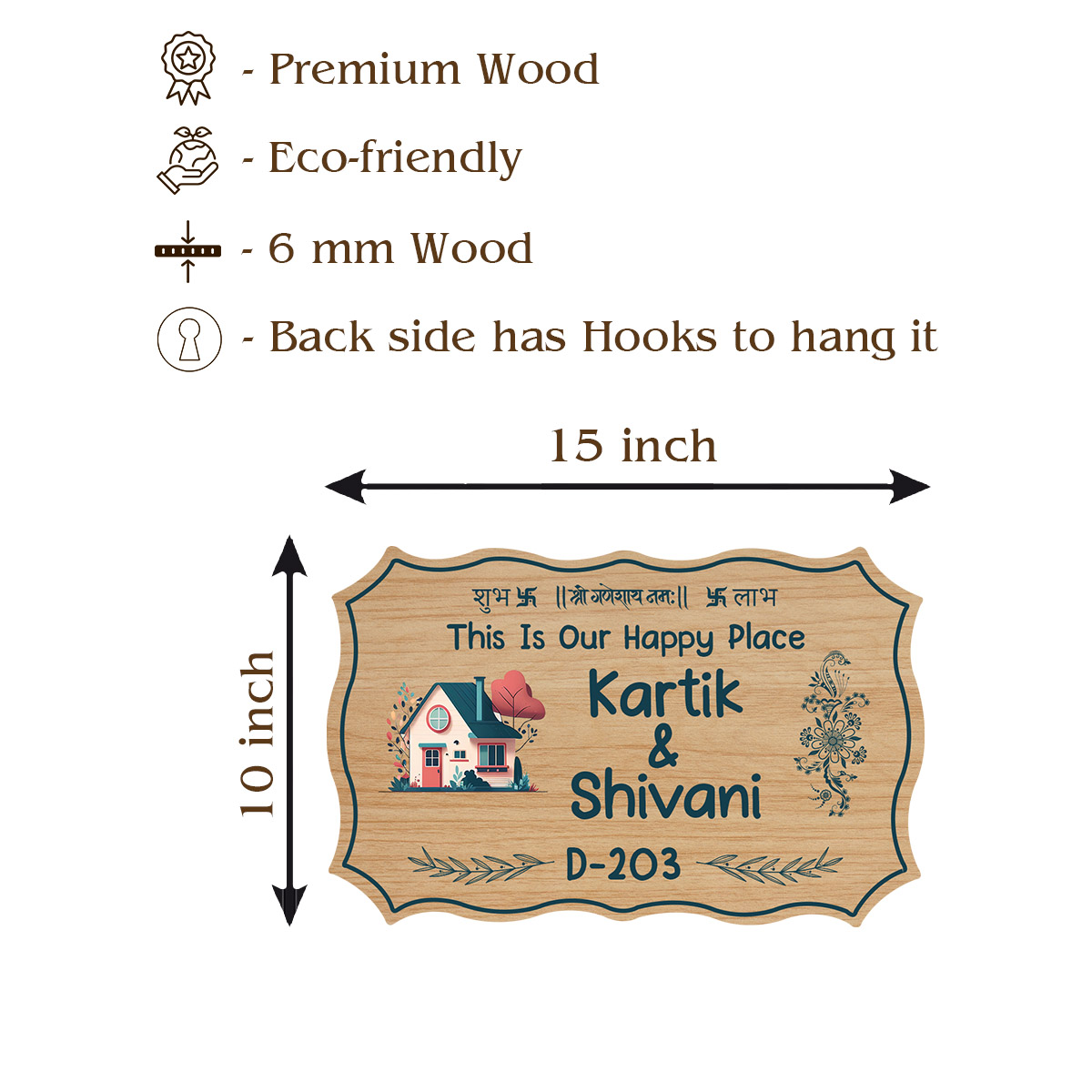 Happy Place Wooden Name plate | Personalized |15*10 inches
