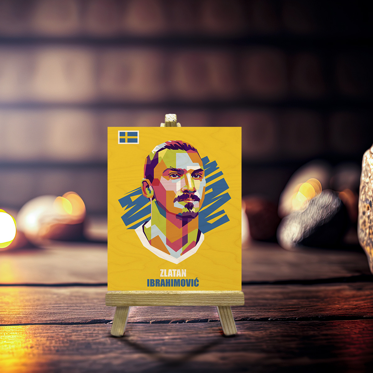 Minimalist Zlatan Ibrahimović Wood Print With Easel Stand | 4X6 Inches