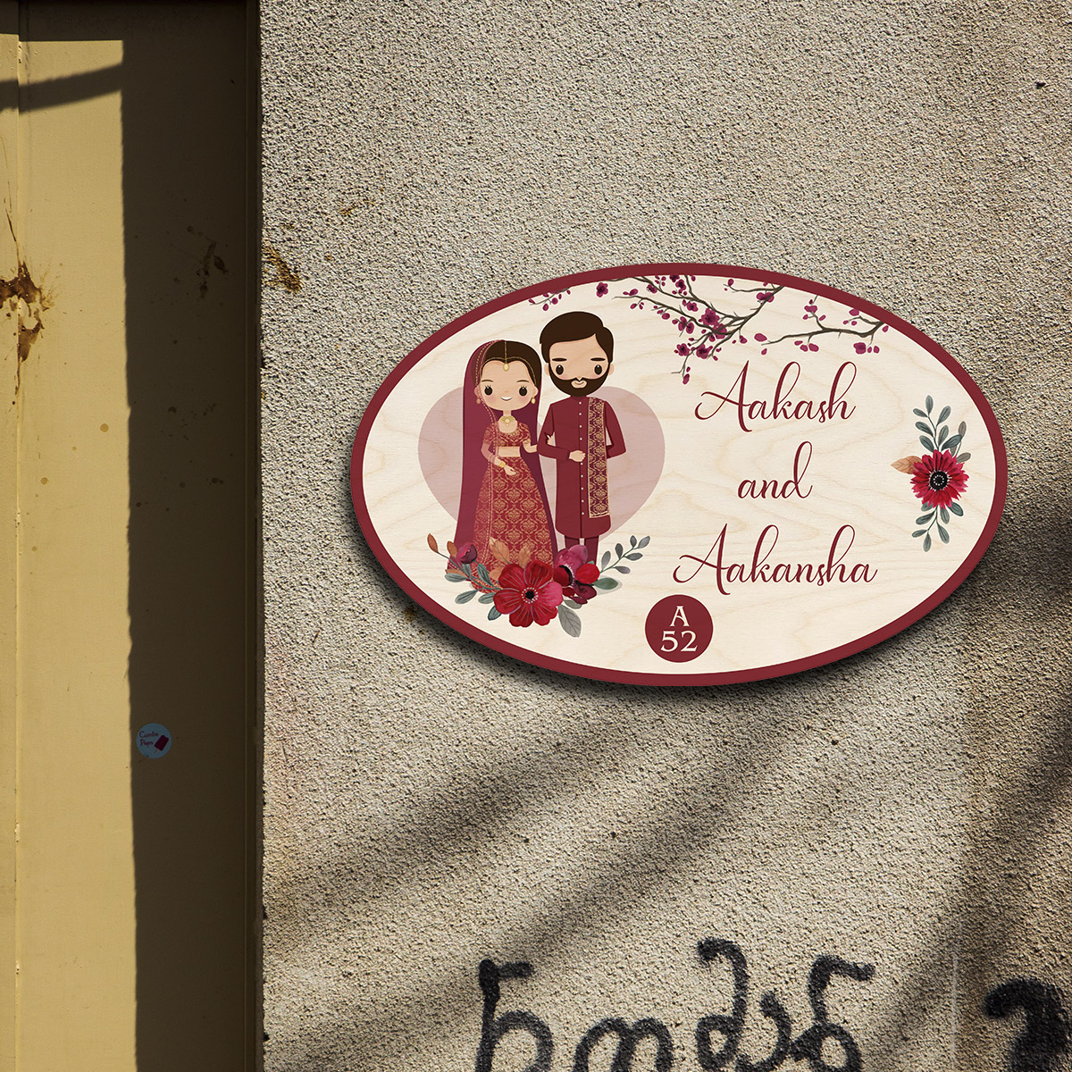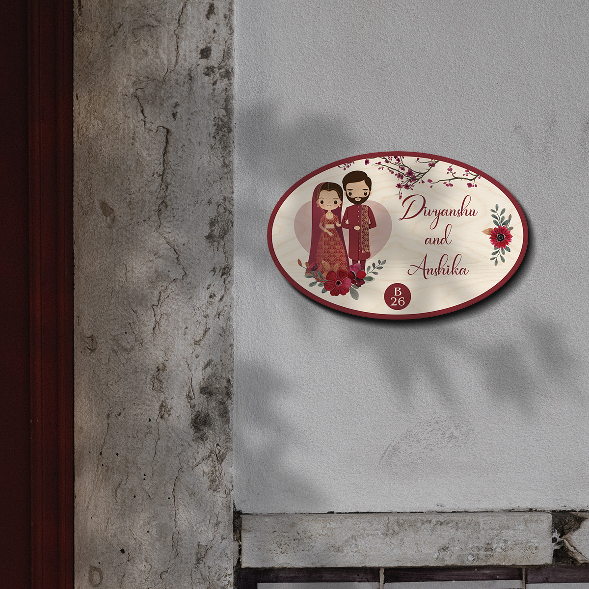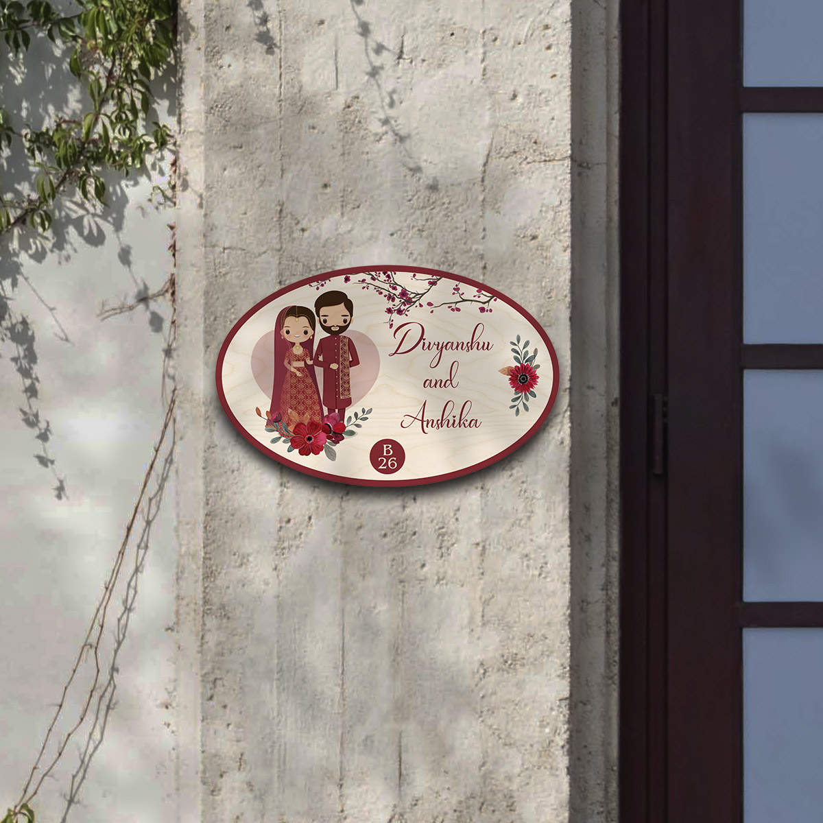 Oval Couple Theme Nameplate | Personalized | 12×8 Inch