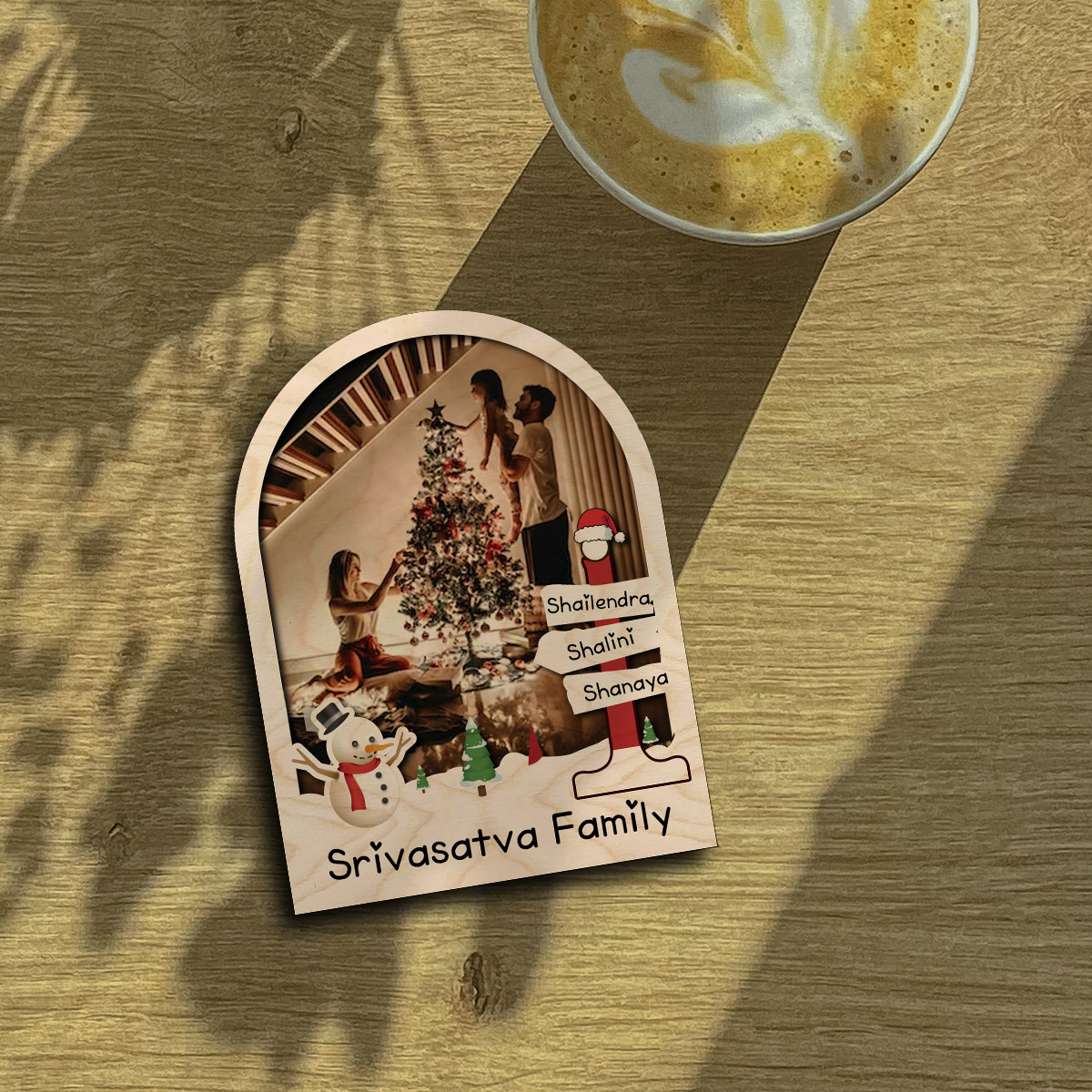 Festive Christmas Magnet | Customized & Personal | Wooden | 4×3 Inch