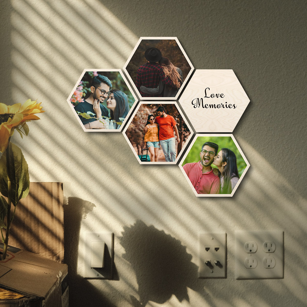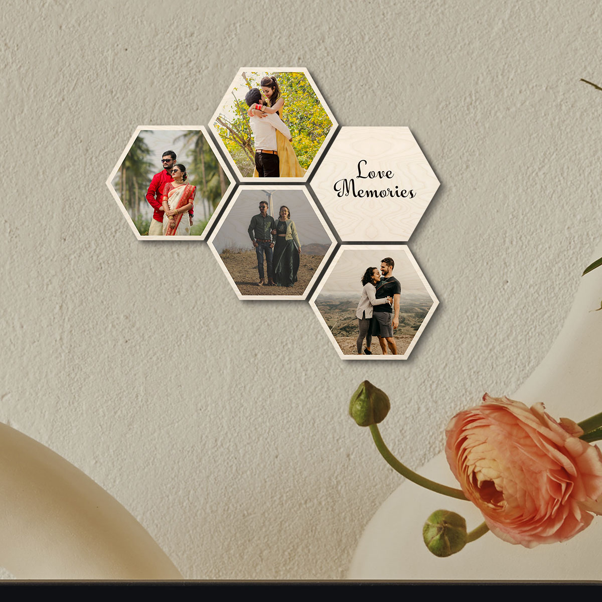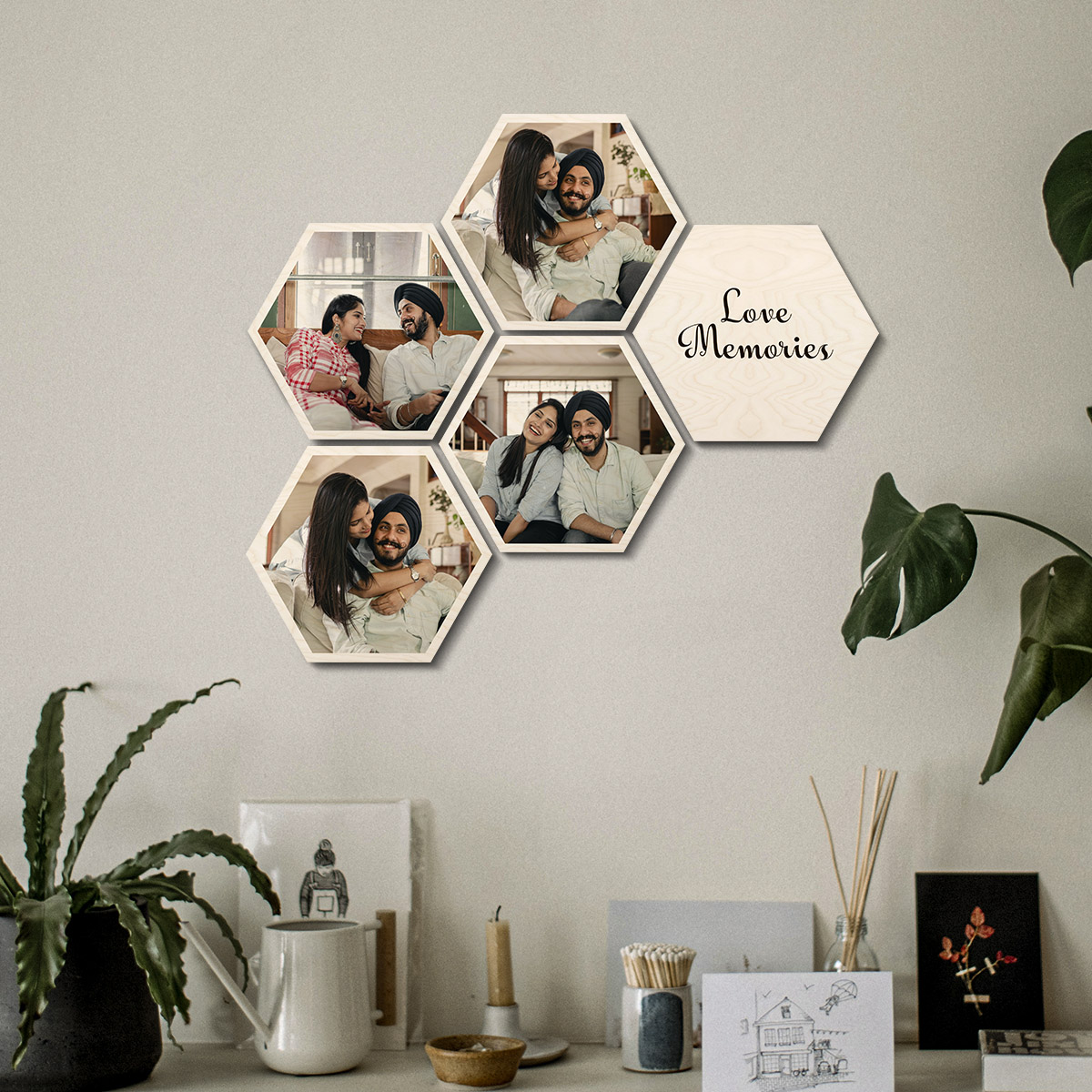 Set of 5 Hexagon Wood Print | Personalized | 8×7 Inch